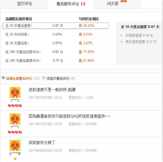 “售后评价”是针对买家对卖家“退款速度”及“退款态度”进行相应评价,这也致使卖家在处理退款上不敢有丝毫马虎。