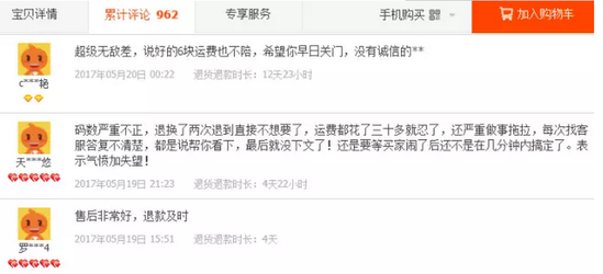 而另一边的买家却不这么看,有买家认为:“购物是一种体验,我在体验的过程中得不到相等价的服务,我当然有权利申请退款,在退款过程中卖家的态度我自然也可以在“售后评价”中写明,让后面的买家参考,如果遇到的是比较黑心的卖家,也能让买家们提高警惕。”