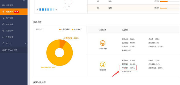 我们去开车的时候,同样先在流量解析里边去看下关键词的市场均值,举个例子,做燕窝的,市场均价就是比较高的,基本上都是四五块的,人均点击花费也会在六七块左右,这个时候你出价也就只有一块多的时候 ,但是是没有展现的,因为整体出价太低,导致整个直通车权重很低,是没有办法去展现。