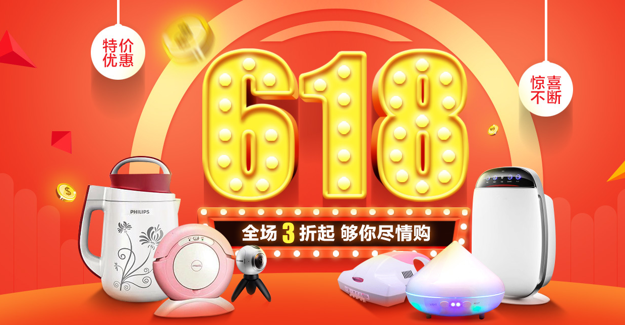 以上两张图片,是电商中常见的活动海报,饱和度比较高,都是比较鲜艳的纯色调。高饱和度的作品是比较常见的,因为高饱和度的海报会给人热情、活力、健康的感觉,比较有促销感,比较适合活动页面。