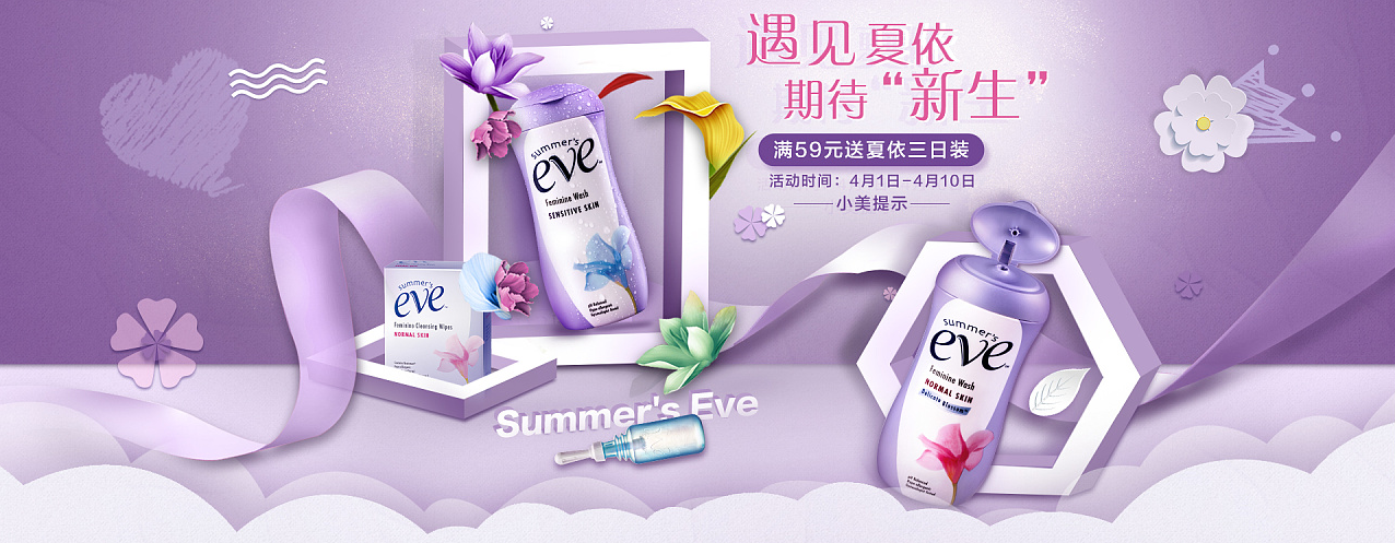 紫色是代表女性的色彩,可以表现女性的优雅,气质,并且带有神秘的感觉,可以使用女性内衣,体现梦幻神秘的格调,也可用蓝+紫的搭配形式。